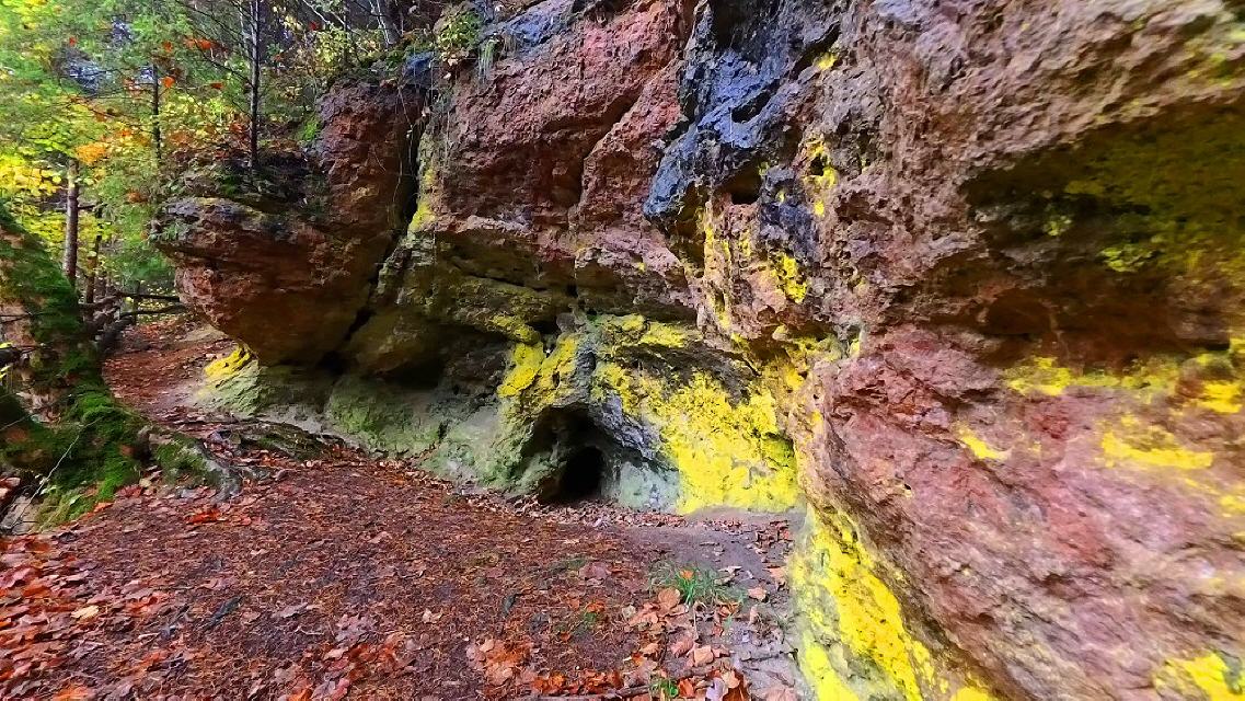 Das Kräuterweib soll in einem Felsen gehaust haben. Tatsächlich trifft man bald auf eine Höhle, das Nanteleloch. Es ist gut zu finden. Eine Begehung ist jedoch nicht möglich, denn man muss bäuchlings hineinrutschen. Nach zwei Menschenlängen ist dann Schluss. Damit ist die Annahme widerlegt, dass sich hinter dem Felsen ein Saal befindet, wie der Volksmund annimmt.