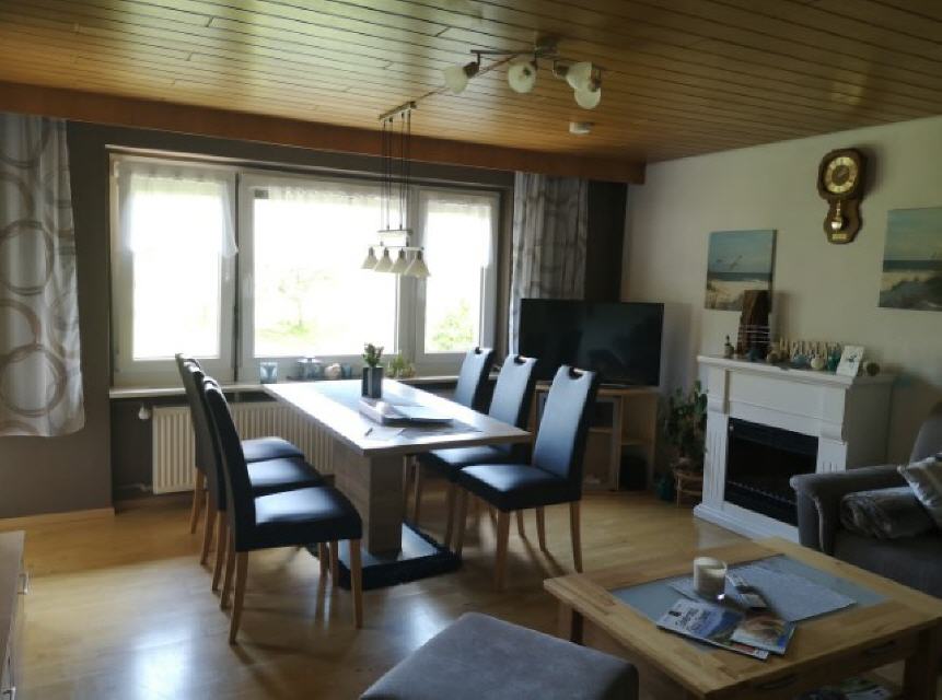 Wohnzimmer mit SAT-TV und Stereoanlage, Esstisch für 6 Personen