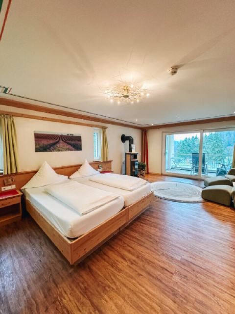 im Haupthaus (Einzelzimmer, Komfort Doppelzimmer auf Wunsch mit Balkon oder unsere Doppelzimmer Superior -45 qm mit Balkon und Blick ins Tal, Familienzimmer, Juniorsuite und rollstuhlgerechte Zimmer) im Gutshof (Komfort- oder Superior Doppelzimmer, Juniorsuite und Komfort-Appartements mit getrennten Wohn- und Schlafraum mit Balkon)