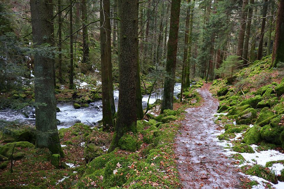 Die wenig bekannte Teichschlucht zwischen Gütenbach und Simonswald hat es ganz schön in sich. Sie ist wild und bietet spektakuläre Abschnitte. Wer sie durchschreitet (oder besser durch klettert), sollte in jedem Fall trittsicher sein und über eine gute Kondition verfügen. Erreichbar ist die Teichschlucht am besten über den Wanderweg ab Gütenbach (Wanderparkplatz Felsenkeller). Von dort geht es auf einer Fahrstraße etwa einen Kilometer bergab bis zum Ende der Sackgasse.