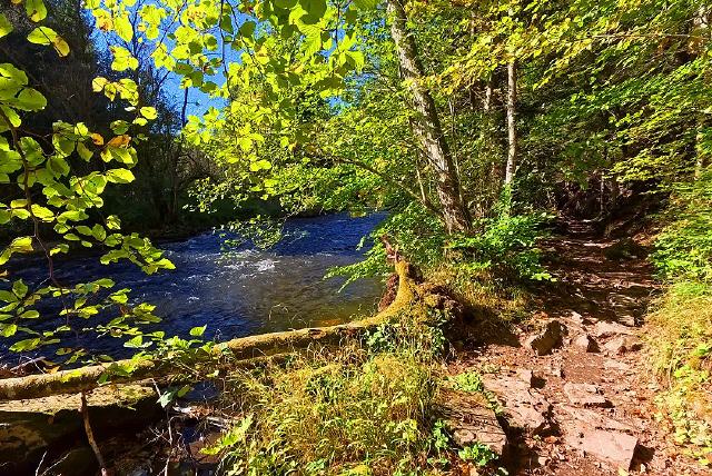 Die wilde Monbachschlucht bei Bad Liebenzell ist ein Erlebnis besonderer Art und sollte bei einem Urlaub im Nordschwarzwald nicht fehlen. Der Weg führt über schmale Pfade, umgestürzte Baumstämme, vorbei an sattgrünen Flussauen, glitzernden Bächen, wilden Felsformationen und einem echten Wasserfall. Bild antippen!