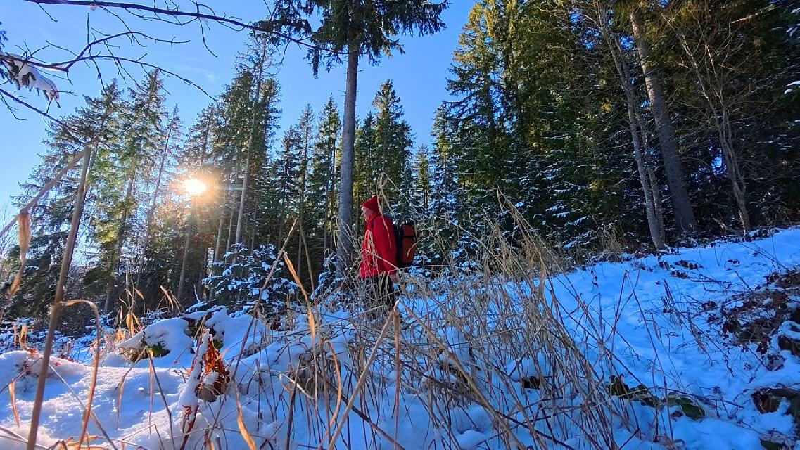 Der Start zu dieser aussichtsreichen Winterwanderung rund um die 1015 m hohe Kesslerhöhe könnte nicht besser sein. Er ist beim Kurhaus, wahlweise auch beim Bahnhof (Parkplätze), und führt über den Adlerweg, vorbei an der Kirche "Maria in der Zarten", dann weiter auf der Sickinger Straße bis zur Kreuzung Hans-Thoma-Straße. Dort geht's bergauf über den Bruderstiegweg in Richtung Erlenbruck. Von dort hat man einen einzigartig schönen Blick hinunter nach Hinterzarten, aber auch auf die Höfe in Oberzarten und zum Feldbergmassiv.